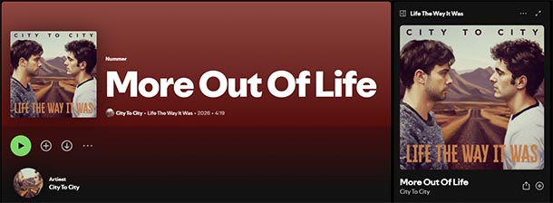 'More Out Of Life'. Eerste nummer dat ik met City to City opnam in 1998 en het laatste nummer op het onlangs verschenen album 'Life The Way It Was'.